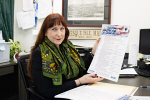 Students from Central Aroostook High School and cast members of Shakespeare & Company’s Northeast Regional Tour stand in a circle during a Friday workshop in UMPI’s Gauvin Auditorium. (Cameron Levasseur | The County)