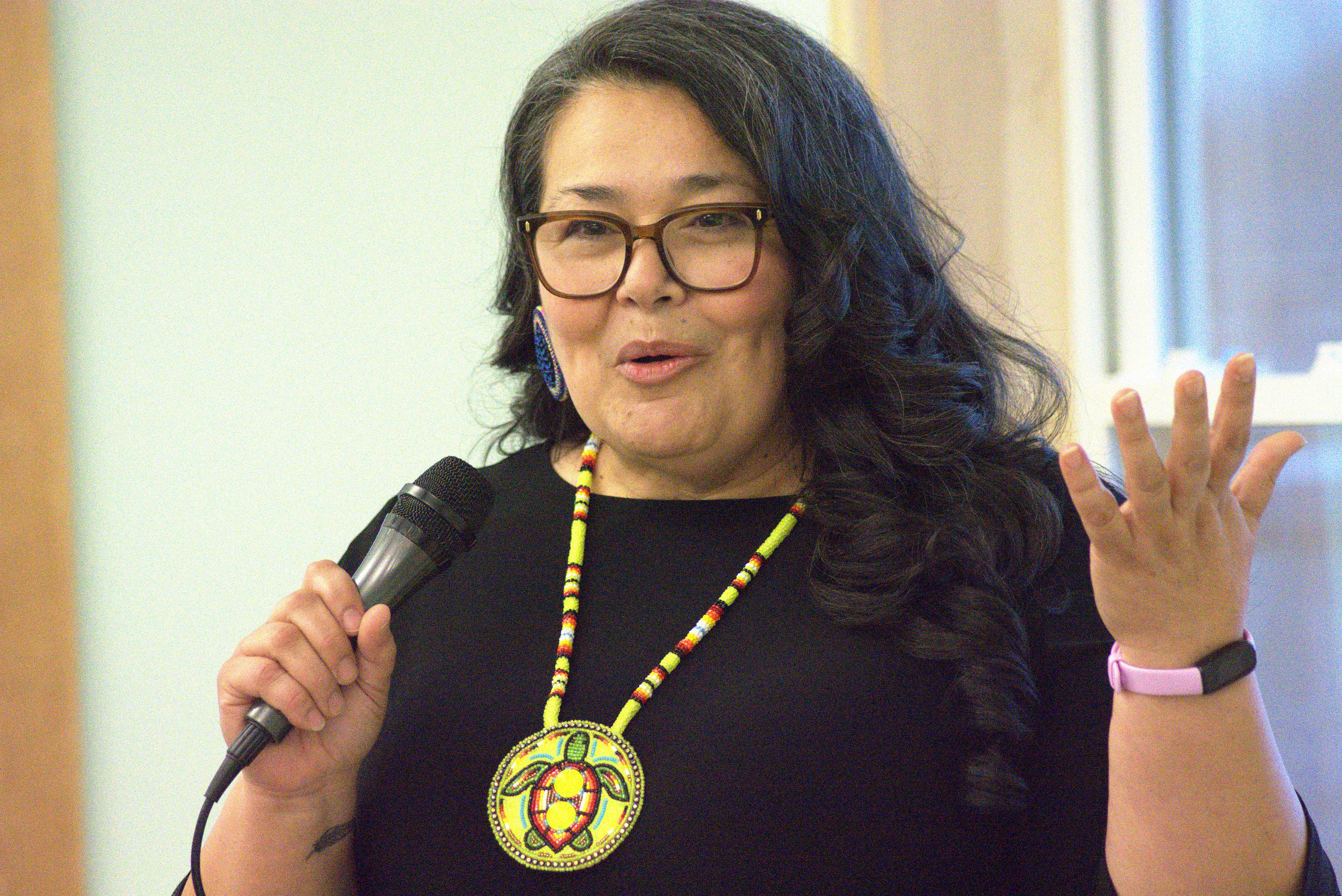 Houlton Band of Maliseet Indians Chief Clarissa Sabattis welcomed everyone to the first-ever Wabanaki Alliance Gubernatorial Candidate forum on Thursday night in Houlton. (Kathleen Phalen Tomaselli | The County)