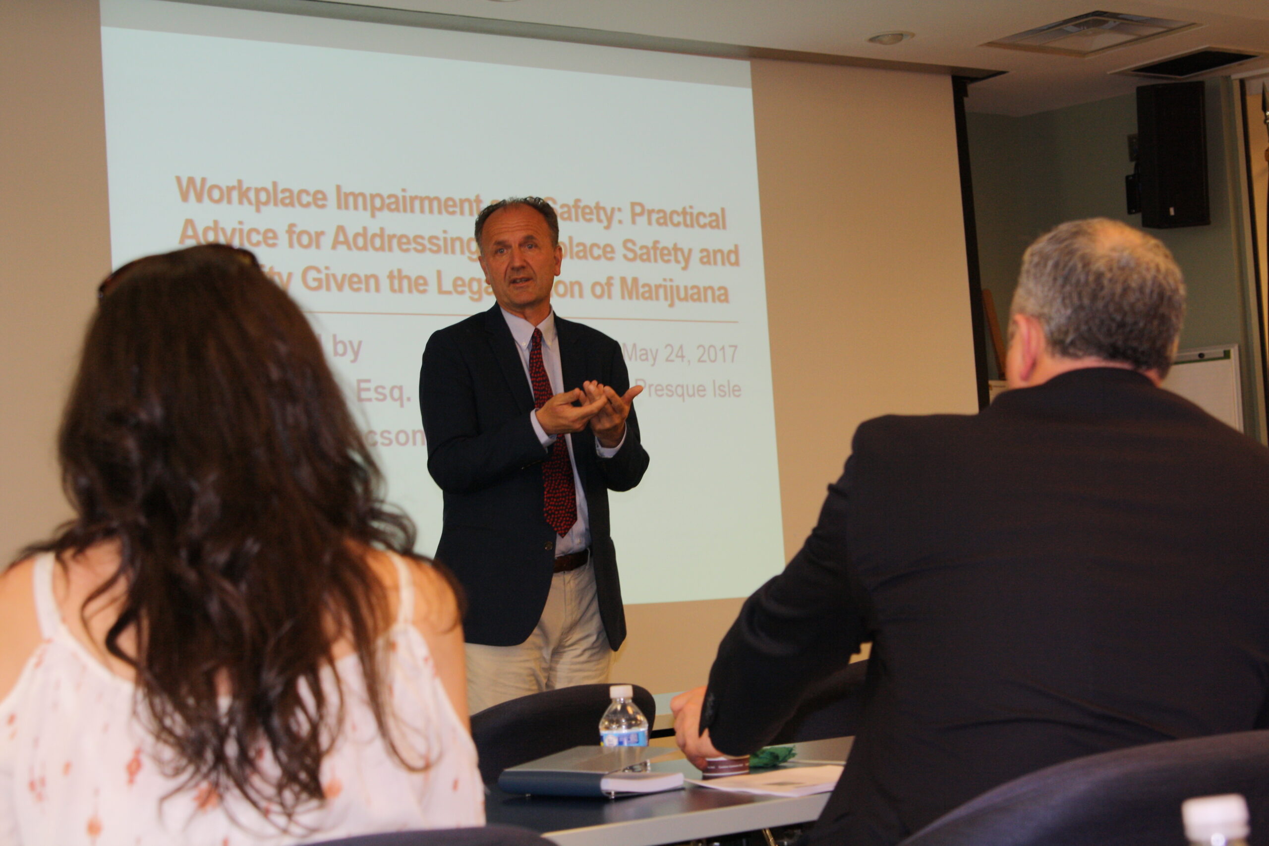 Employment attorney Peter Lowe of the Lewiston-based firm Brann and Isaacson advised a crowd of area employers at Northern Maine Community College on May 24 to be proactive and develop good drug policies.