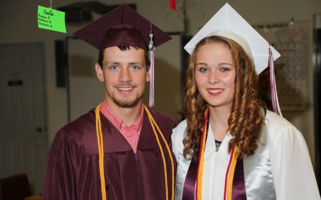 - East Grand seniors Philip Farley Jr., left, and Sarah Stoddard pose for a photo opp at Thursday’s graduation ceremony. (Joseph Cyr)