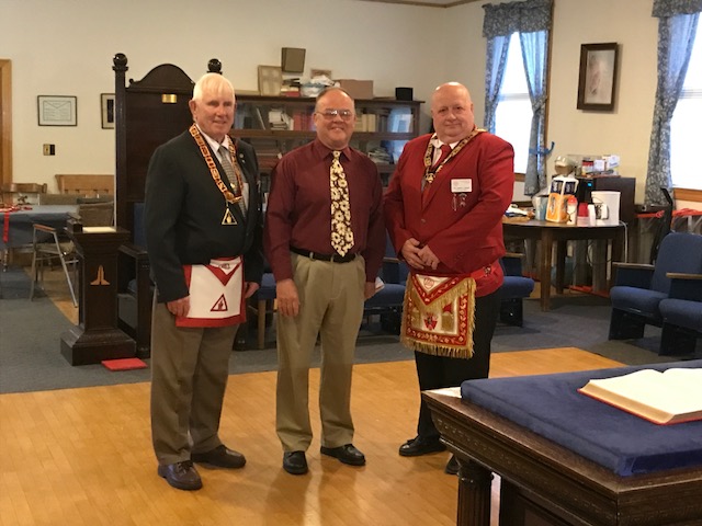M.E. Adams also accepted on behalf of the Grand Lodge of Maine copies of Tim’s newest book and earlier published books. In attendance for these presentations were Past Grand High Priests Howard Weymouth and Harold Birt, Jr. of Piscataquis and Mt. Katahdin chapters respectively.