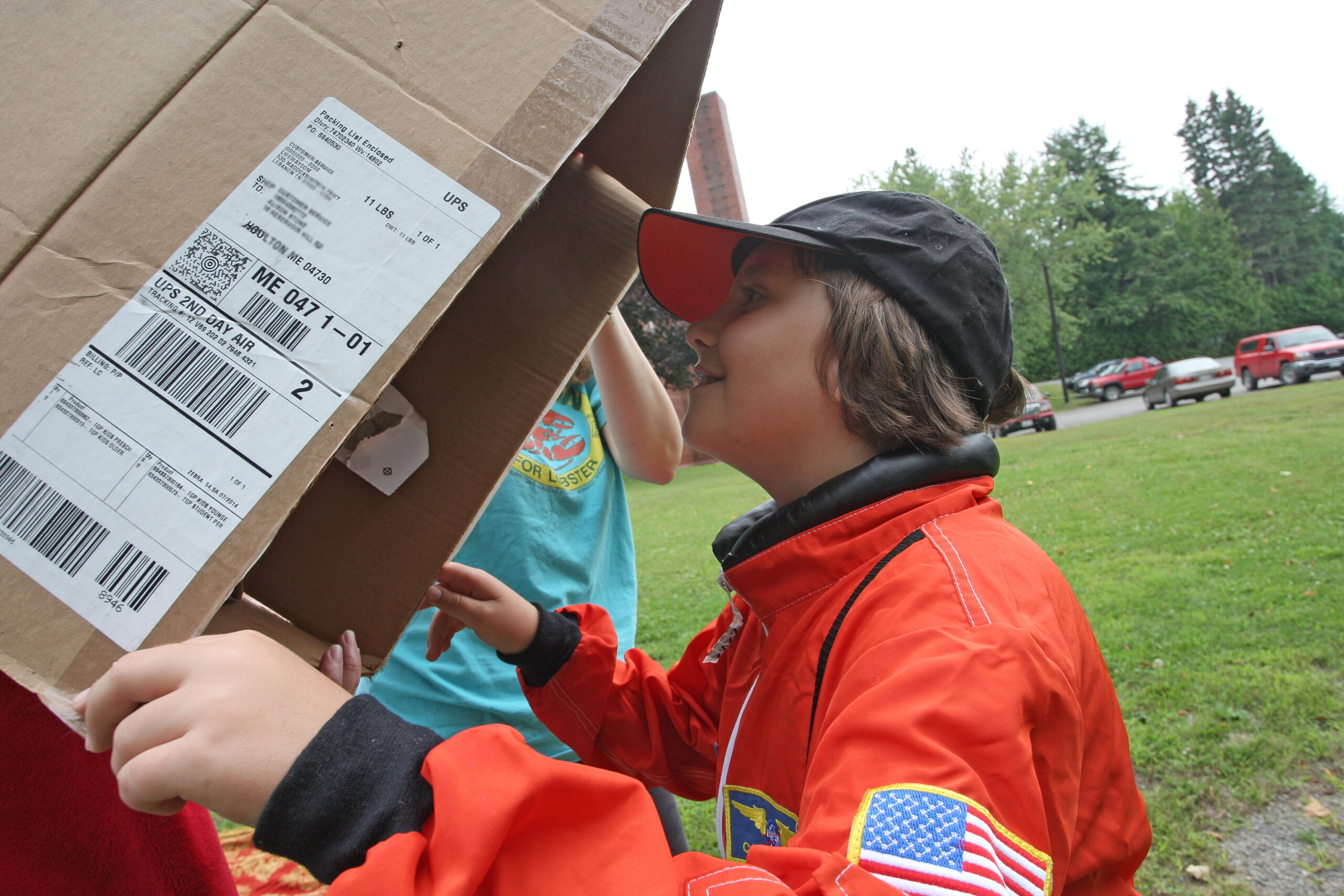 Those gathered used a variety of homemade devices to safely watch the eclipse. Their viewers ranged from cereal boxes to larger cardboard boxes, with holes punched in them to project the sun’s image onto a white sheet of paper.