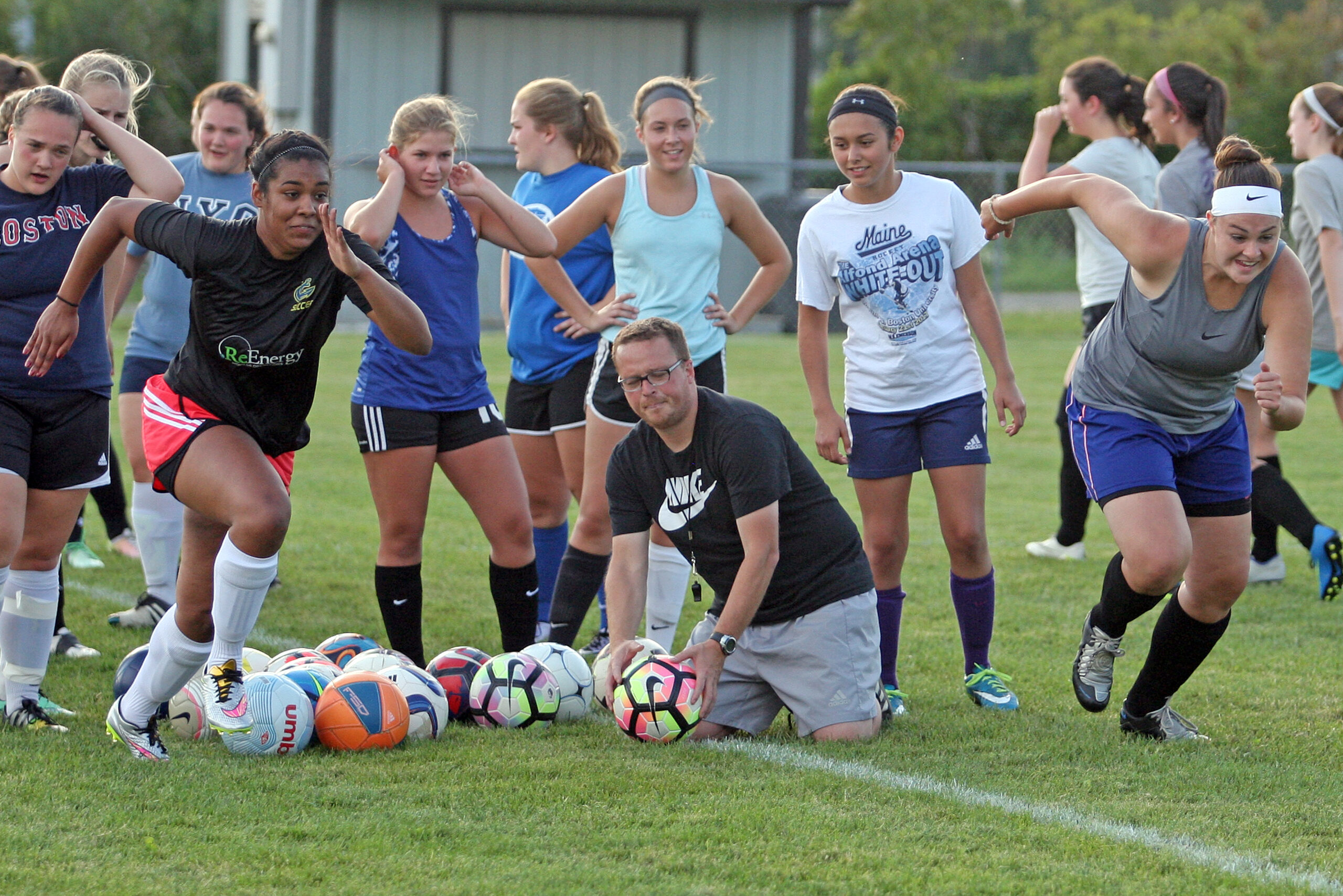 Houlton senior Claire Gilpatrick works on her footwork during a recent girls soccer practice for the Shires. Houlton has a number of returning players this fall and could be poised for yet another deep playoff run. (Joseph Cyr)