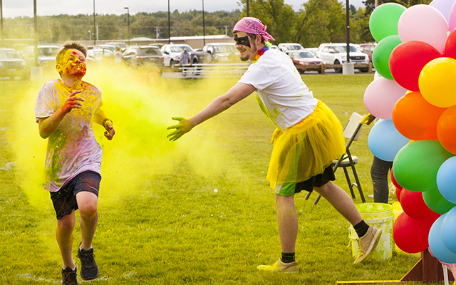 PRESQUE ISLE, Maine — The Star City was a little more colorful on Saturday, Aug. 26, as white clad runners sprinted from Riverside Park to the University of Maine Presque Isle and back while taking fistfuls of color powder to the face and body, returning to the finish line looking as though they were mauled by a rainbow.