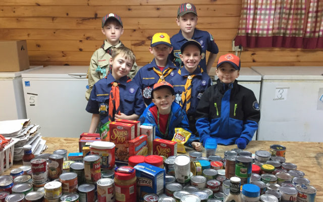 - Cub Scouts organize food they delivered to the Easton Food Pantry during the service project Scouting For Food, held Nov. 10. From left are, in front, Gabe Coty and Grant Hull. Middle, Thomas King, Mason Pelletier and Jared Coty. Back, Blake King and Zach Pelletier. (Courtesy/Hillary Hallett)