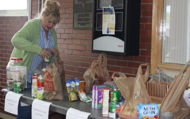 - Dixie Shaw, hunger and relief services director for Catholic Charities, loads up boxes of food donated by central Aroostook teachers and school administrators on Friday, Sept. 20. (Staff photo/Melissa Lizotte)