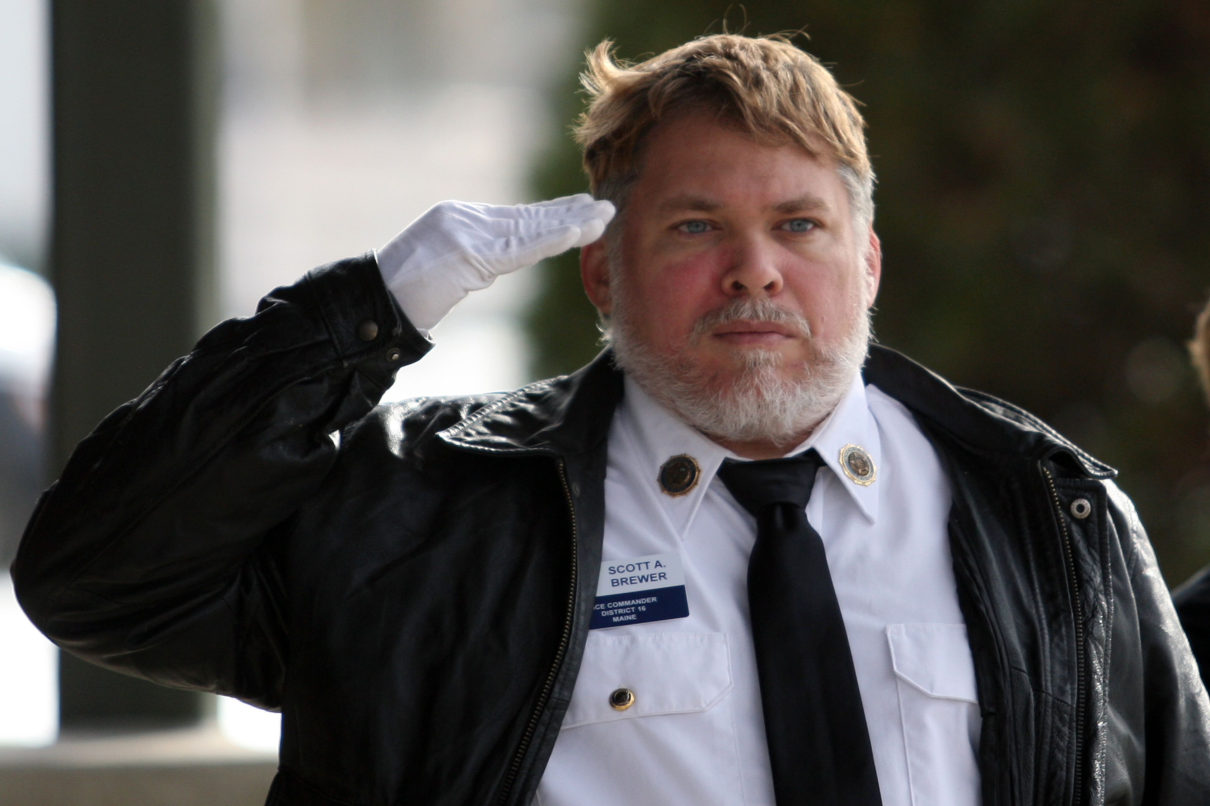 Scott Brewer of the American Legion Post No. 47 salutes the flag Monday during a Veterans Day ceremony in Monument Park.