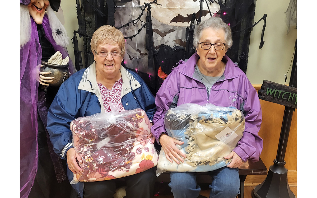 Sisters Joyce Lafrancois (left) and Kalen Hill recently delivered six fleece blankets to the Maine Veterans Home in Caribou. Six more blankets are being made and will be delivered soon. “The Holy Rosary Blanket Ministry has been making blankets for our veterans since 20014. We hope the blankets bring them warmth, comfort and love. Veterans are the backbone of our country and we always need to show them just how special they are and how thankful we are for all they have done for us,” said Judy Bougie, ministry chairperson.