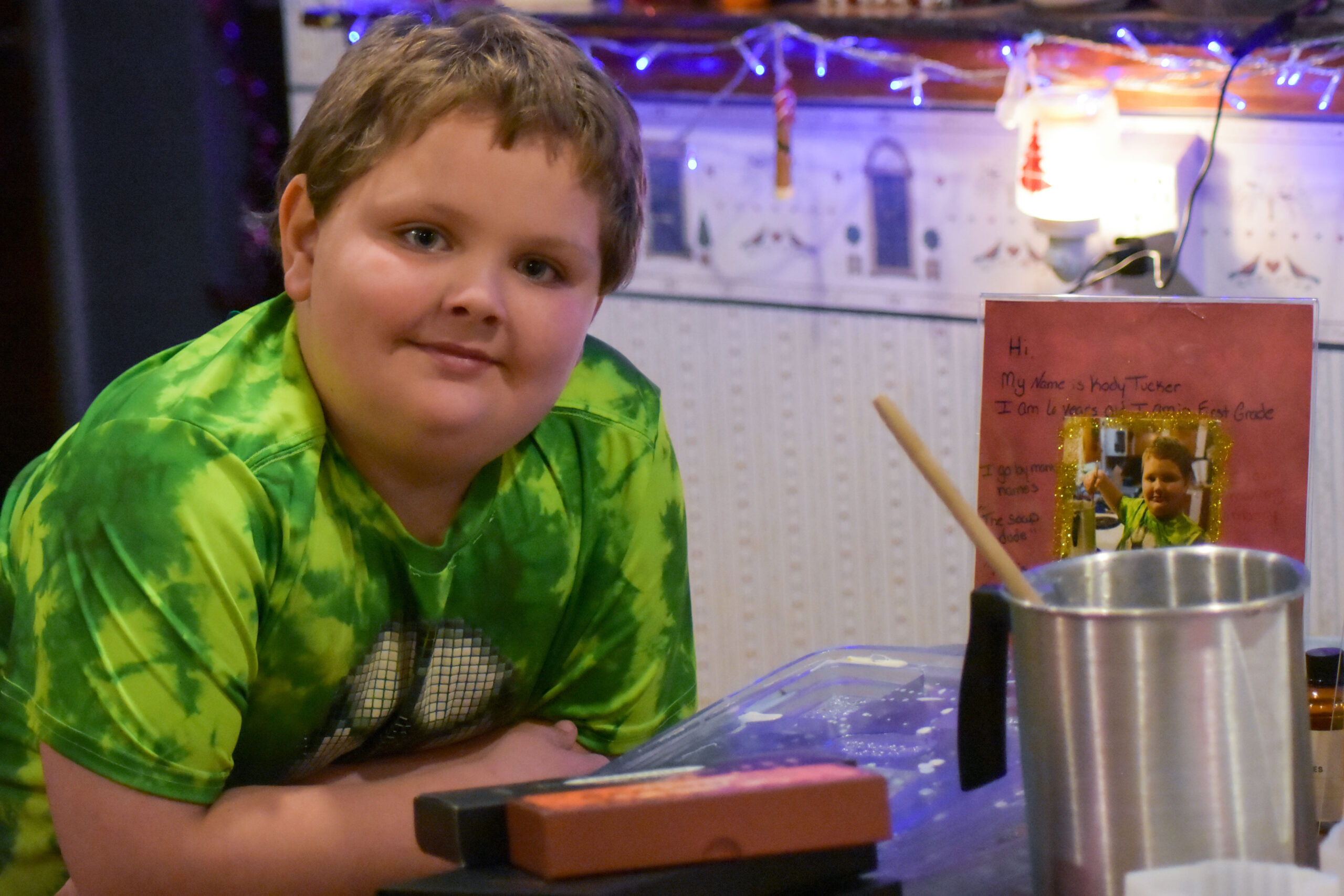 MT. CHASE, Maine — Dec. 22, 2023 — Six-year-old Kody Tucker’s soaps are a hot item in the Mt. Chase Patten area. (Kathleen Phalen Tomaselli | Houlton Pioneer Times)