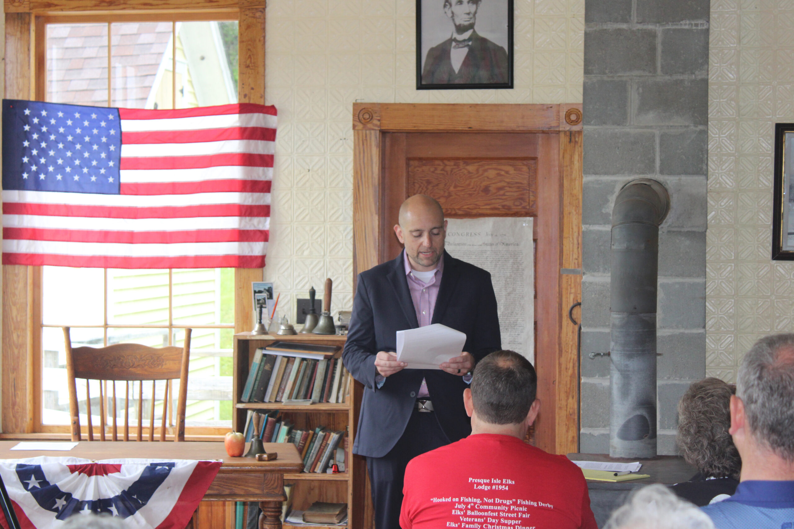 The James School, a historic restored one-room schoolhouse, welcomed more than 40 people Thursday for the annual reading of the Declaration of Independence. After the flag was hoisted outside, City Manager Tyler Brown read the document and the names of the signers.