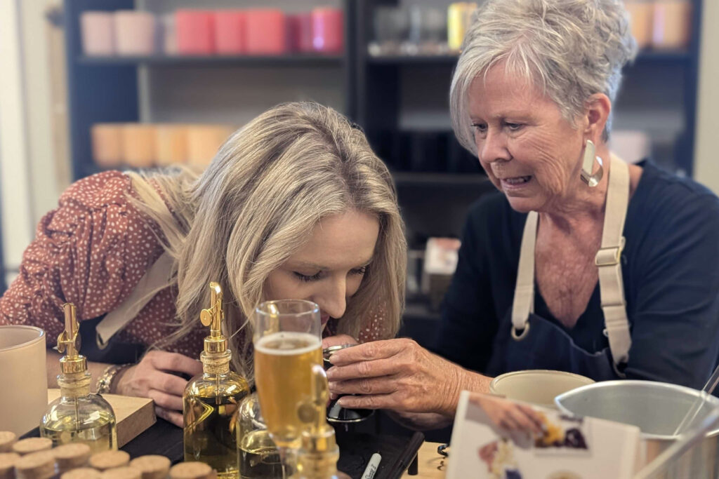 On a recent day at the candle bar, four women tested fragrances as Audet guided them through the process. One was making a candle for a friend about to welcome a child. Another combined favorite kitchen scents. All compared fragrances, talked and laughed.