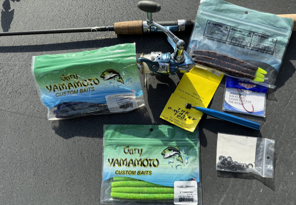 When he first mentioned fishing a “wacky rig,” I thought he was just pulling this ol’ County boy’s leg, maybe even both of them. Nope. I saw it, I tried it, and it’s now the number-one tool in my tackle box. As strange as the setup looks in and out of the water, for some reason it drives bass crazy with its odd movement.