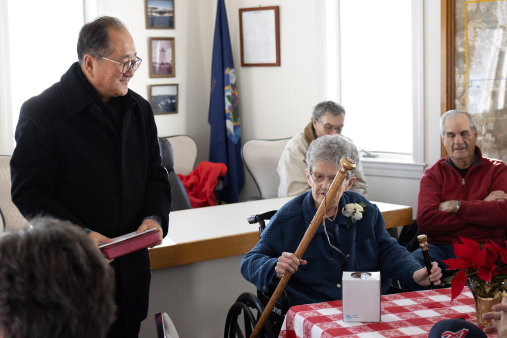 Amid a flurry of family members and friends, the town of Limestone presented its Boston Post Cane to the town’s oldest living resident Tuesday afternoon.