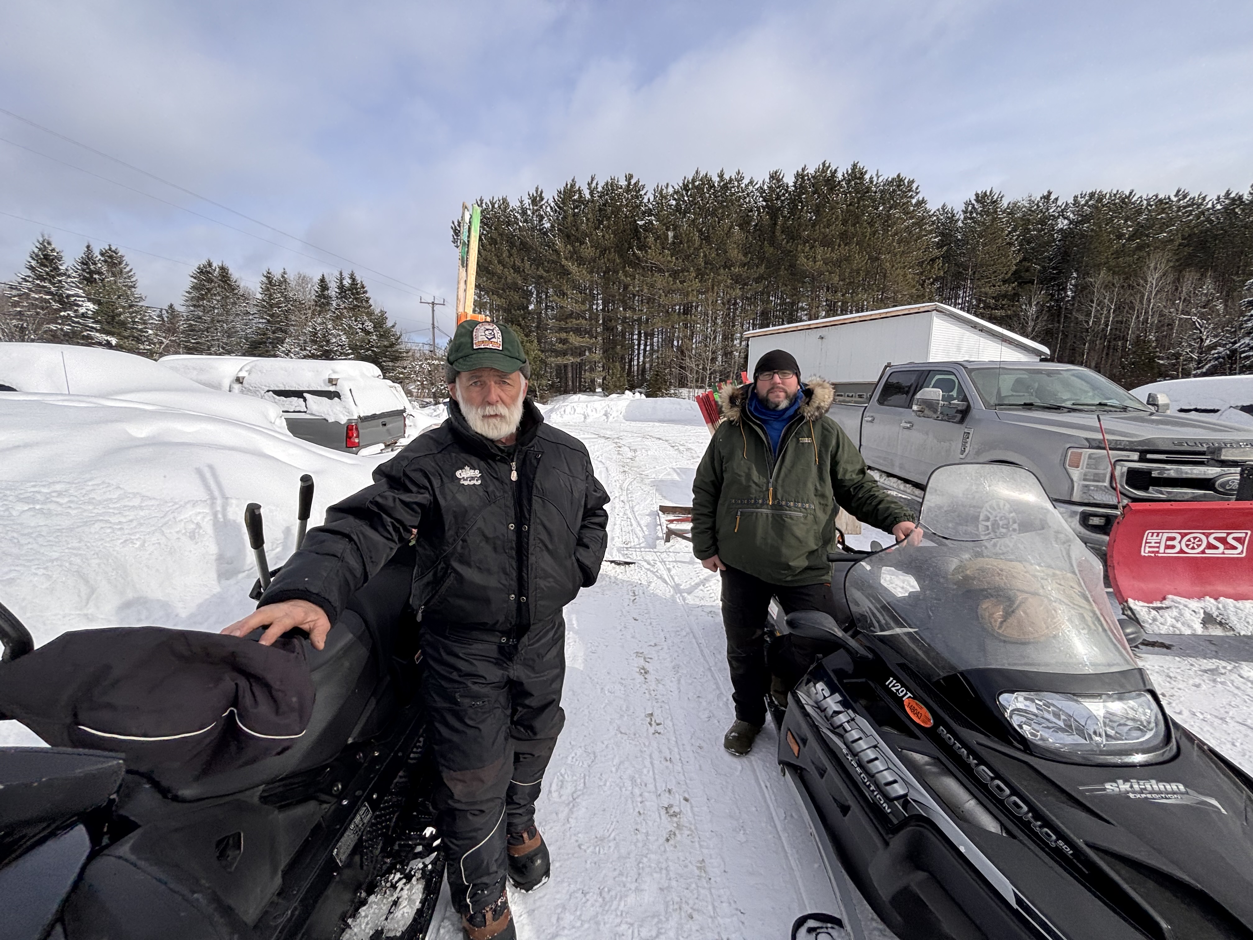FORT KENT, Maine — Can-Am Trail Boss John Pelletier is pictured on the left with crew member Jared Ashley as they prepare to head out to work on the trails for the race. Pelletier takes care of a 100-mile stretch of trails that are traveled by all mushers in all three race categories. (Chris Bouchard | The County)