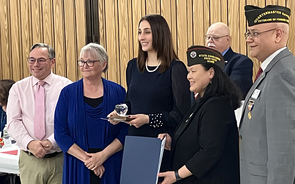 The Department of Maine Veterans of Foreign Wars presented the honor during its annual Voice of Democracy and Patriots Pen awards ceremony, held in January. The honor highlights Moir’s dedication to teaching not only the standard curriculum, but her unwavering commitment of instilling values, patriotism and citizenship into her everyday practice, VFW officials said.
