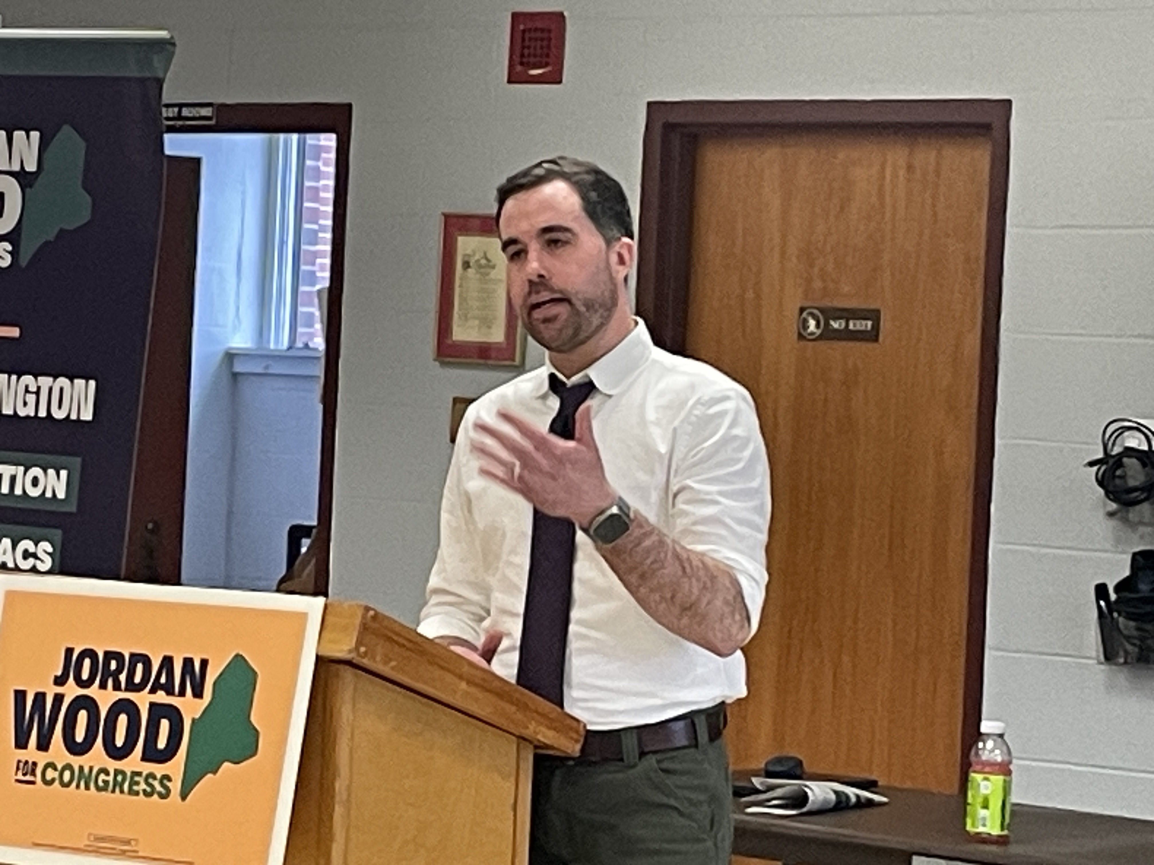 HOULTON, Maine — Less than 15 minutes into U.S. congressional candidate Jordan Wood’s Thursday night Aroostook County town hall, a man identifying as a “1965-style Louisiana Democrat” began a tirade about Maine’s immigrant population and voter fraud.