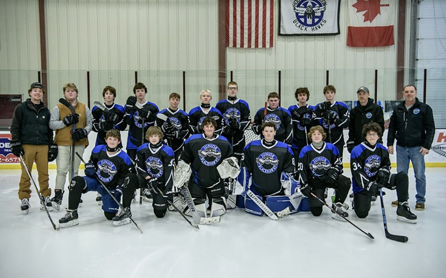 The Southern Aroostook Minor Hockey Association became the 2025-2026 Tier 4 Youth 14U Northern Conference Champions the weekend of Feb. 21 and 22. They defeated Penquis, Brewer Orange and Brewer Black, winning all four of their games. The Junior Blackhawks scored 18 goals.