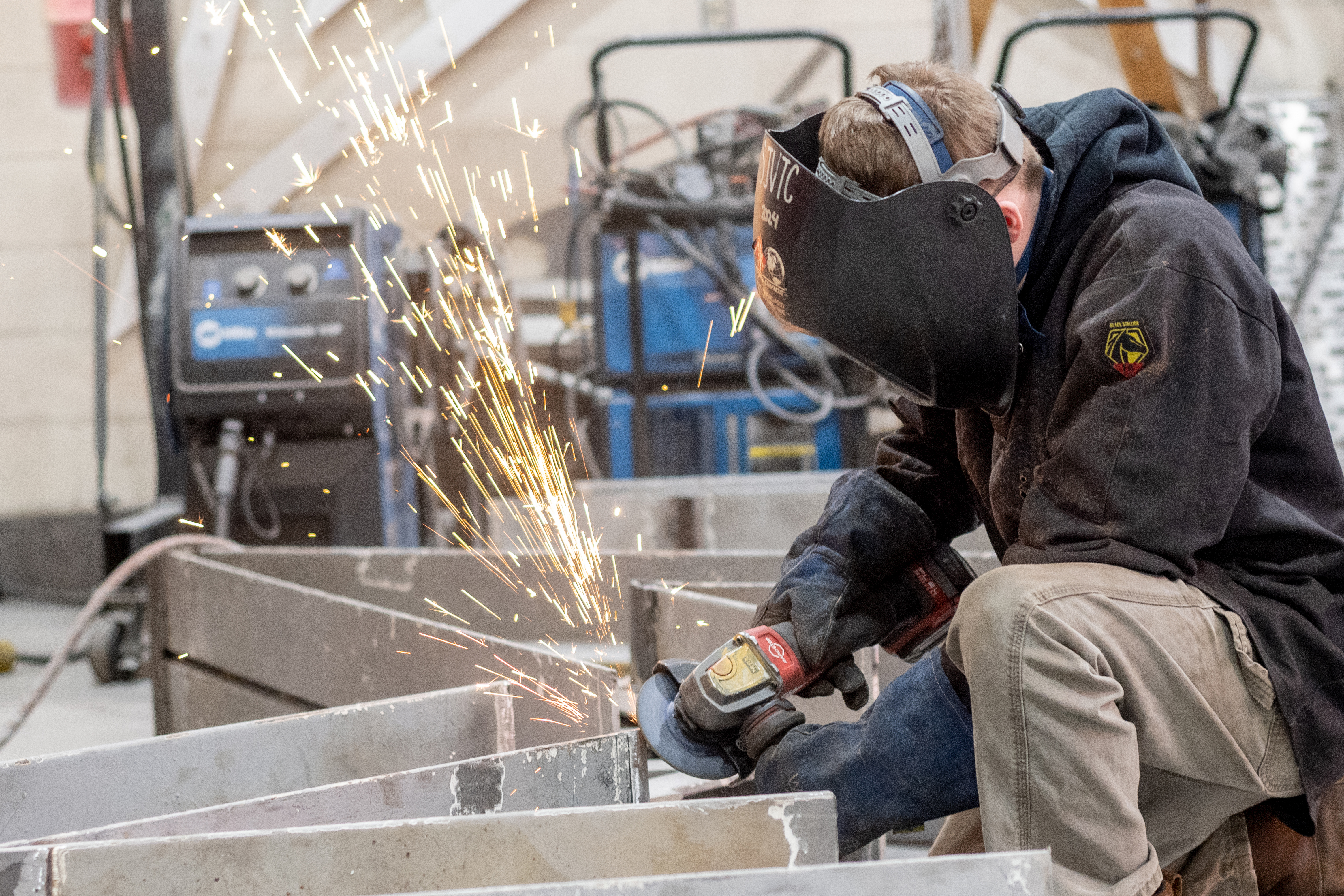 Sparks erupted as welding student Drew Levesque ground the point of a steel star at the St. John Valley Technology Center.