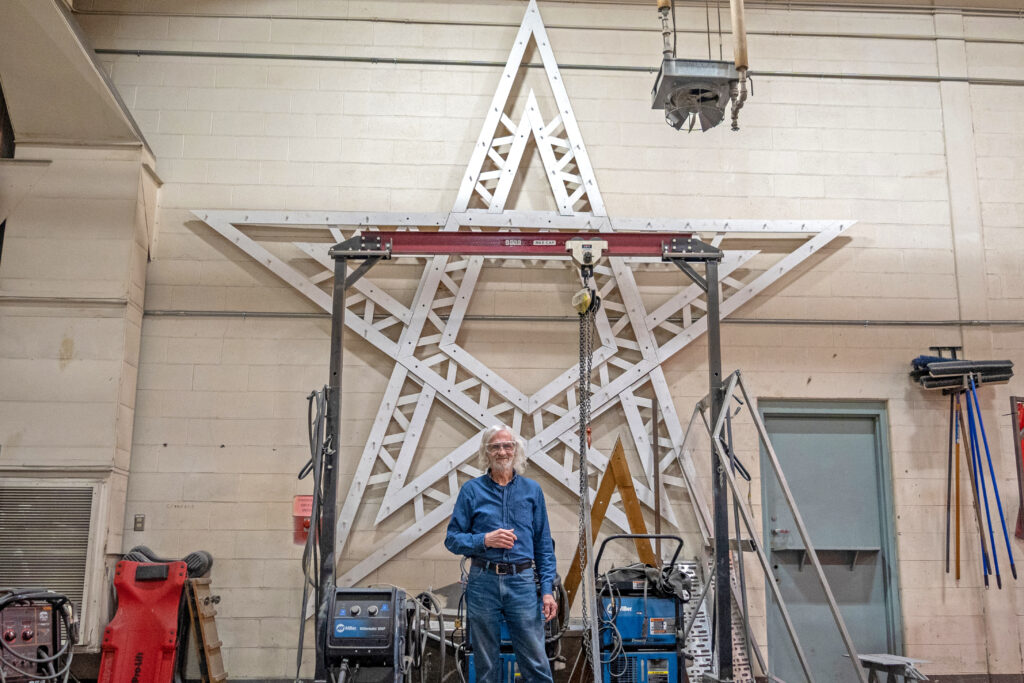 Kevin Lavoie, technology center director, said the five points of the star are now complete, and most of the remaining work involves welding those parts together. The star itself, not including the base or columns it will sit on, weighs 3,300 pounds. The complete project will weigh close to three tons, he said.
