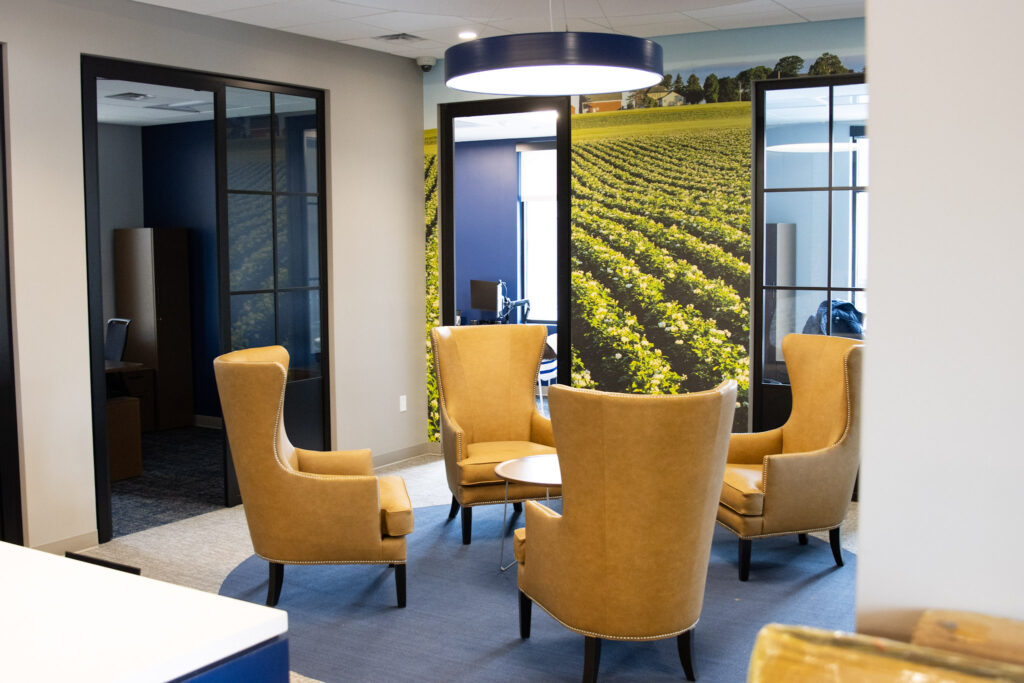 The Presque Isle branch is at 725 Main St., the site of the former Bonanza Steakhouse. A floor to ceiling “This is Presque Isle” mural adorns the entranceway of the newly-constructed building with decades-old photos of the city. A wall-to-wall picture of a potato field overlooks a sitting area.
