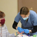 The interior of St. Mary’s Church in Houlton was transformed into a community health clinic on Wednesday, April 21, as Boston College nursing students did health screenings there as part of a four-day sweep through Aroostook County.