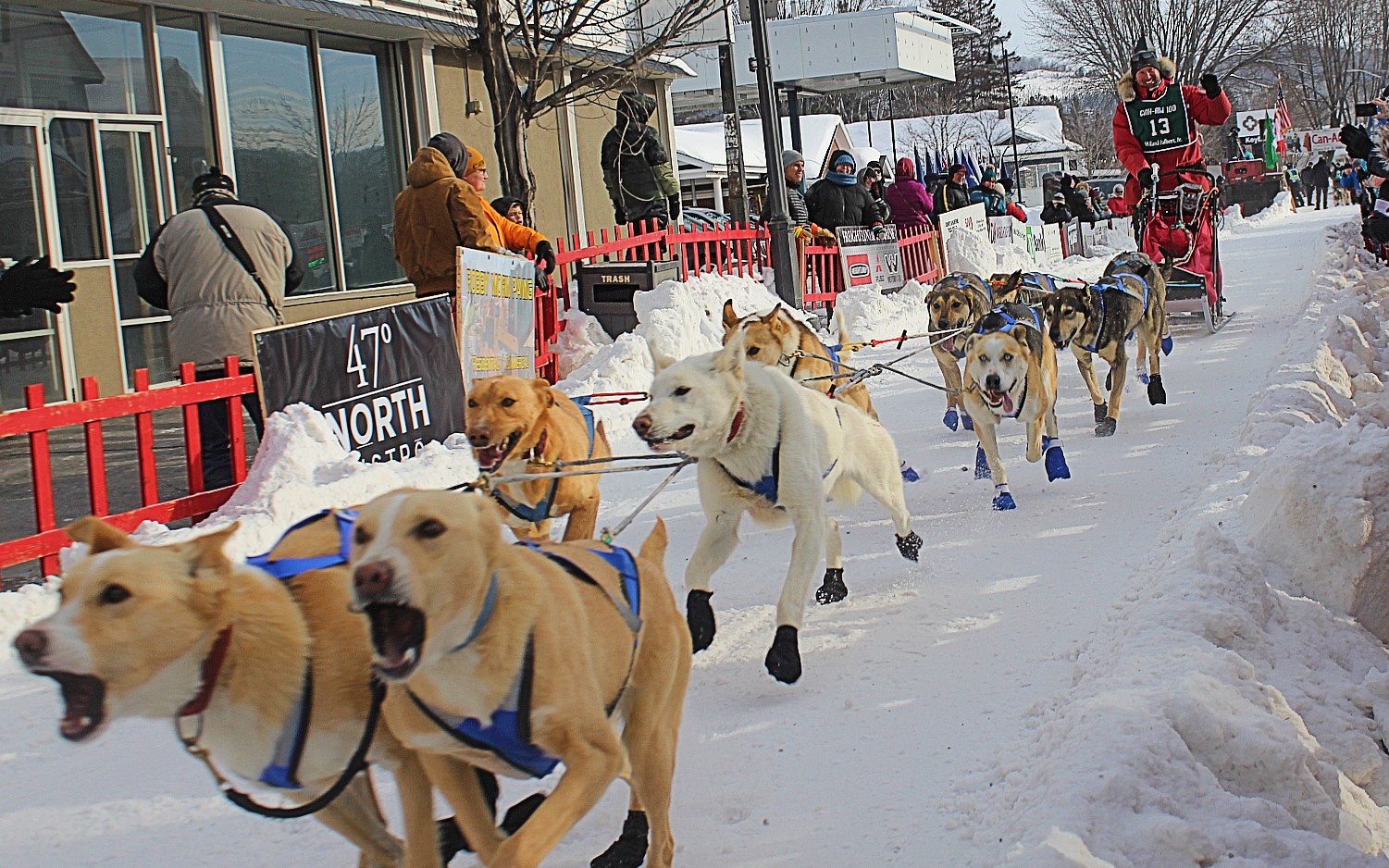 Musher David Boyer of Saint-Liguori, Quebec, and his team of eager sled dogs take off from the starting gate at the 2023 Can-Am Crown International Sled Dog Races. (File: Jessica Potila | The County)